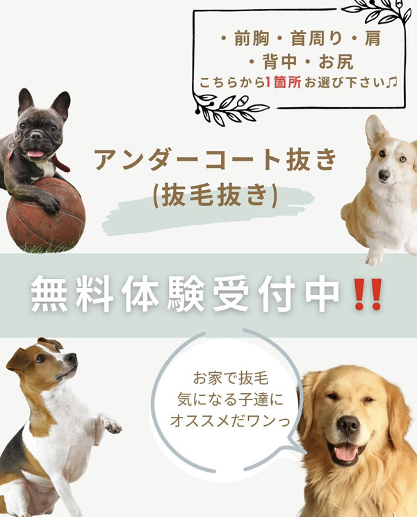 アンダーコート抜き ¥500〜 (抜けた量により変動)